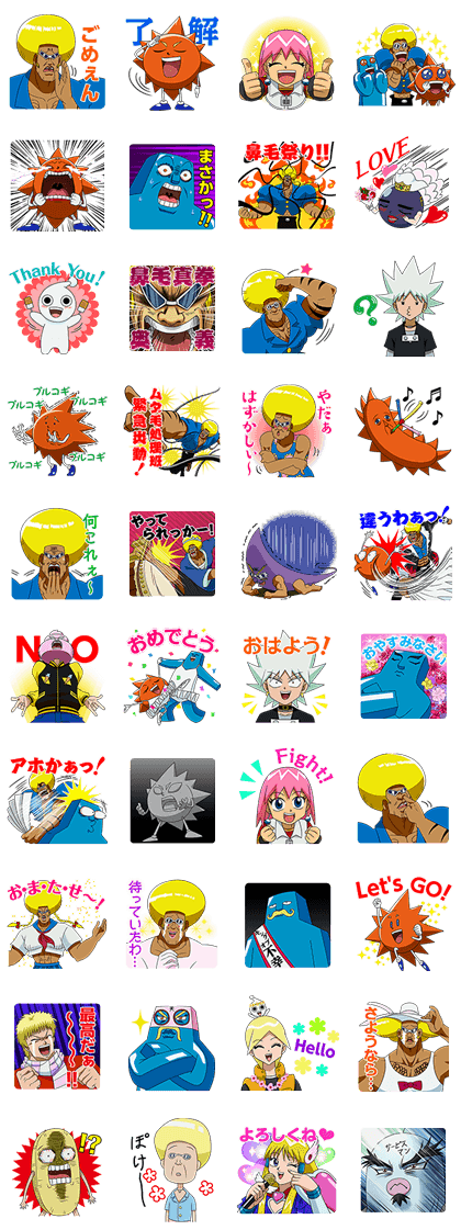 https://www.line-stickers.com/ – BOBOBO-BO BO-BOBO Line Sticker | Oh no, the Hair Hunt Troop has appeared! That’s the bad news, but the good news is that means Bobobo-Bo Bo-Bobo stickers are here. Give those baddies the ol’ one two with Bobobo-Bo Bo-Bobo’s Fist of the Nose Hair and deliver your own brand of hairy justice!