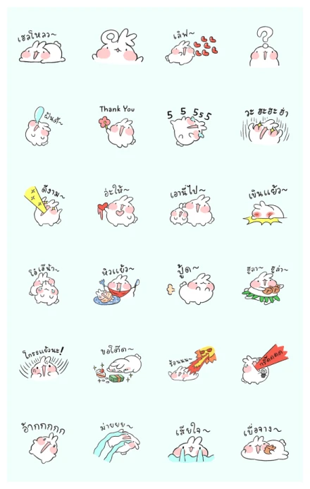 Alright, let’s dive into what makes these Ayaya Sound Stickers so incredibly fun! Imagine a super cute, white bunny-like character, with just a hint of pink in its cheeks and ears, bringing all sorts of everyday moods and hilarious reactions right to your fingertips. This isn’t just any bunny; it’s your new go-to for making your messages pop, loaded with playful sounds and expressions. We start with some chill vibes and head-scratching moments: our little friend relaxed and stretching into the day (‘Morning~’), then wide-eyed and bewildered. There’s also pure affection, blowing sweet hearts with a ‘Love~’ message, and a perfect ‘Confused’ sticker with a big question mark overhead!