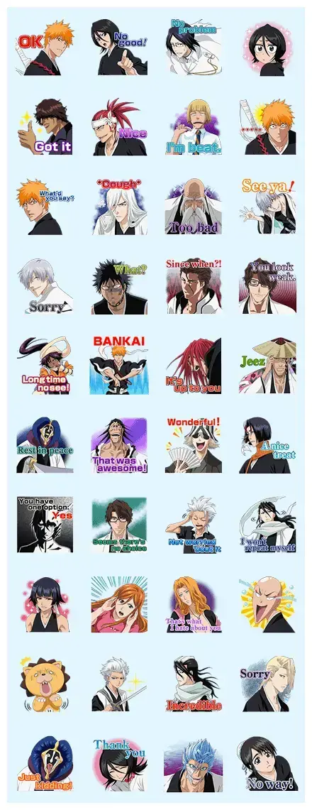 Stickers for the popular anime Bleach are here at last! Exciting scenes will light up your chats.