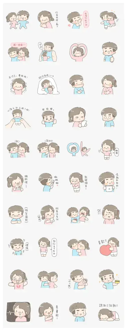This sticker set is a total blast because it looks like it was drawn with a left hand on a whim. In the first row, we see the pair holding hands and Bobo confessing his feelings while they share a massive hug. The second row shows Bobo being a literal pillar of strength for Chuchu and giving a confident thumbs up. Moving to the third row, the couple gets cozy under a blanket and deals with the winter chill together. The fourth row gets a bit more playful with Bobo surrendering to Chuchu’s whims while she scrolls through her phone.