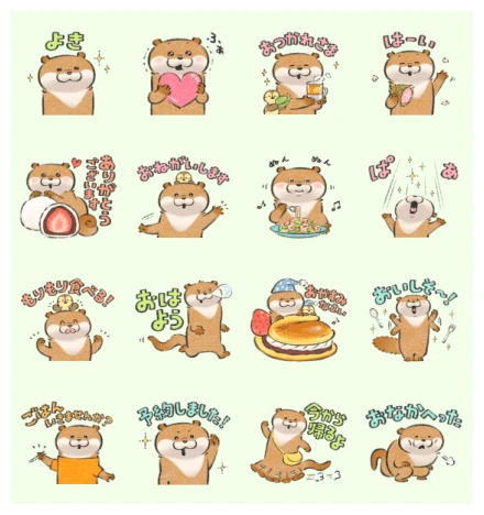 Let’s dive into these fantastic stickers! They’re packed with personality, perfect for everything from quick hellos to making dinner plans. Each row has four unique expressions, making sure you’ve got an otter for every mood.