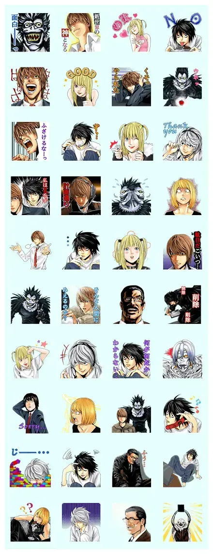 Now, let’s talk about the stars of the show! These stickers perfectly capture the essence of DEATH NOTE’s most iconic characters, ready to add some serious drama and dark humor to your conversations. You’ll definitely want these in your collection!