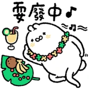 The second row is all about embracing the vacation mindset. We start with the rabbit flexing its muscles next to a big, sparkly “Congratulations!” (恭喜) sign, perfect for celebrating anything. Then, it’s full-on relaxation mode: the rabbit is decked out in a flower lei, sipping a tropical drink, with the caption “Chilling out” (耍廢中♪). The wanderlust is real in the next one, where the rabbit peeks out of a suitcase, beckoning with a paw and saying, “Let’s go! When do we not go?!” (走啊!哪次不走!), a phrase that perfectly captures spontaneous energy. Finally, we see the rabbit’s head tucked under a globe, dreaming of adventure with the words “Want a vacation” (想放假ㄌ).