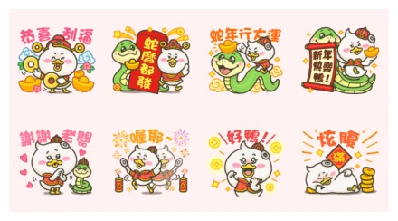 [Taiwan Lottery Scratchcard exclusive New Year stickers are here!] The adorable Quack Duck and its Year of the Snake friends are here to wish you a Happy New Year! Featuring the most festive greetings and highly practical everyday phrases. Share them with your friends to download together, scratch for luck to welcome the Golden Snake, and prosper all year long! Limited to 150,000 downloads♪ Available till February 4, 2025.