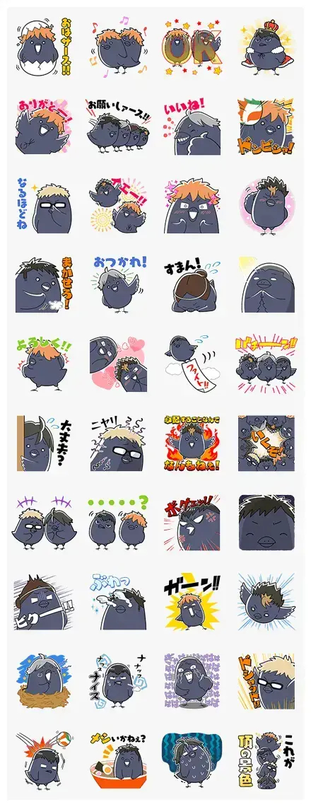 It’s all the excitement of the hit anime “Haikyu!!”, but this time featuring the adorable Hinagarasu mascots. Grab this set for a spike of fun in your chats!