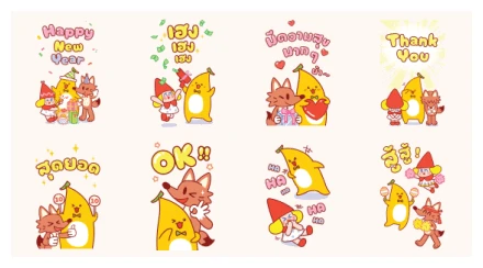 So, what makes this sticker pack so special? It’s the delightful cast of characters, of course! We’ve got Krungsri Banana, who is literally a banana-shaped personification of happiness, joining forces with the super charming Rinny Red, a gnome-like figure, and the ever-so-cute Milo, a foxy friend. This trio is ready to sprinkle some magic into your messages, celebrating the New Year in style. Let’s dive into each sticker and see what festive fun they’re bringing to the table.