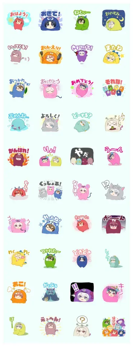 The idols from the smartphone game IDOLiSH7 are all dressed up in a parade of cuddly costumes for this sticker set!