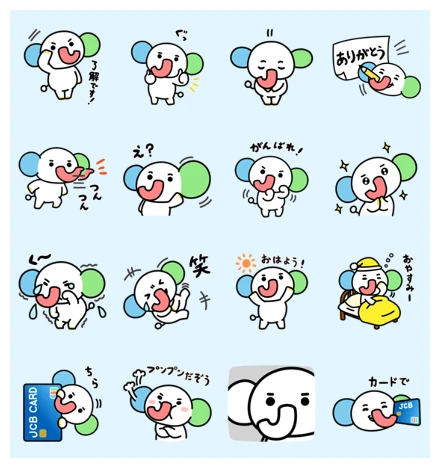 This super cute sticker set is all about Jiei-kun, JCB’s official elephant character, and wow, he’s just bursting with personality! It’s a fantastic pack for literally any daily chat because Jiei-kun covers so many moods. You’ll catch him looking totally confused, like in the “eh?” sticker, or maybe giving a big thumbs-up, super excited. There’s even a sweet one where he’s writing “thank you” (arigato), which is just adorable. Plus, you get those essential “good morning” and “good night” stickers, which are always handy. And of course, since he’s from JCB, you’ll see him proudly showing off that credit card! It’s such a fun, expressive set that really brings some charm to your messages.