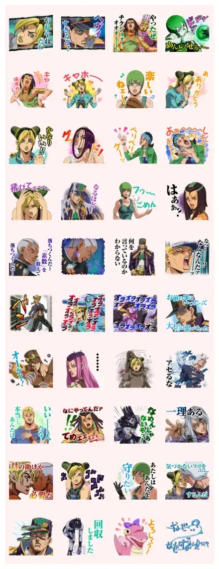 Check out these official LINE stickers featuring JOJO’s Bizarre Adventure: Stone Ocean. This set has all your favorite characters and lines from the second half, including DIO’s sons!