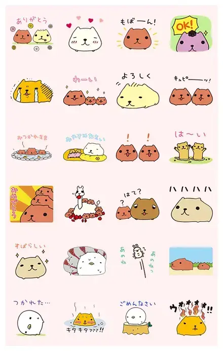 The capybara are on the move in this animated sticker set from KAPIBARASAN! Add that cute touch to your chats only these fun little critters can provide.