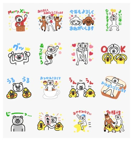 The first row kicks things off with pure holiday cheer. You’ll find KETAKUMA popping out of a chimney in a Santa suit, ready to wish everyone a jolly “Merry Xmas!” Next up, KETAKUMA, the POINCOs, and even KETAUMA are having a blast, dancing around to say “Happy New Year!” There’s also KETAKUMA and KETAUMA looking hopeful, offering a sweet “Please treat me well this year” greeting. Finishing off the festive start, KETAKUMA and the POINCOs cheer energetically, wishing everyone “May you have a good year.” What a perfect way to ring in the holidays!