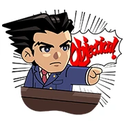 First up, we’ve got Phoenix Wright, our main man in defense. In one sticker, he’s totally flustered and sweating bullets, probably trying to piece together a tricky case or deal with a shocking revelation. Then, he’s full-on in action, pointing a determined finger with an “OBJECTION!” bubble, ready to turn the tide in court. You can almost hear his declaration!