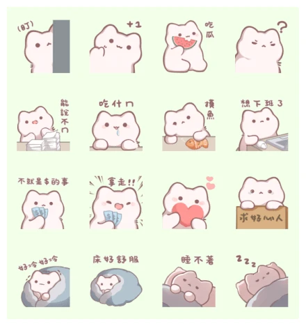 Ever felt buried under a mountain of tasks? There’s an Emeow looking utterly stressed with papers, asking, “Can I say no?” Yeah, we feel that. Then there’s the perpetually hungry Emeow, drooling and wondering, “What to eat?” — a question we ask ourselves daily! And for all the folks dreaming of freedom, there’s the “lying flat” Emeow with its taiyaki, ready to ditch the grind, followed by another Emeow eagerly counting down the seconds to “get off work.”