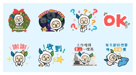 The first row of stickers really leans into the celebratory spirit. You have got Jamie popping out of a lush green Christmas wreath, looking super festive with a red bow, which is perfect for that end-of-year greeting. Right next to it, there is a dynamic New Year sticker featuring fireworks exploding in the background while Jamie holds sparklers, screaming excitement. It captures that specific energy of watching the Taipei 101 fireworks. Moving along, there is a very practical sticker where Jamie is surrounded by colorful question marks, looking genuinely puzzled. It is a great reaction image for when your friend sends a text that makes absolutely no sense. To round out the top row, there is a massive, bold red “OK” with Jamie cheekily peeking out from behind the letters, making a simple agreement look enthusiastic.