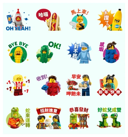 Taiwan’s first LEGO®-themed stickers are here, blending Lunar New Year elements with LEGO’s fun style to brighten your messages. Friend LEGO TW’s official account to get this set. Available till February 13, 2025.