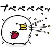 Hold onto your hats, because the first sticker in this row is pure fury! The white chicken is breathing fire from its wide-open beak, letting out a roaring “ぐぉおおおおお!” Next, it’s wide-eyed and mouth agape, with sweat drops, looking completely shocked or horrified. Then, we see the chicken enthusiastically slurping or eating something like a strawberry, with crumbs flying and a “プペペペペッ” sound. The final sticker shows the white chicken zipping past in a flash, with a “すいー” sound, indicating swift, smooth movement.