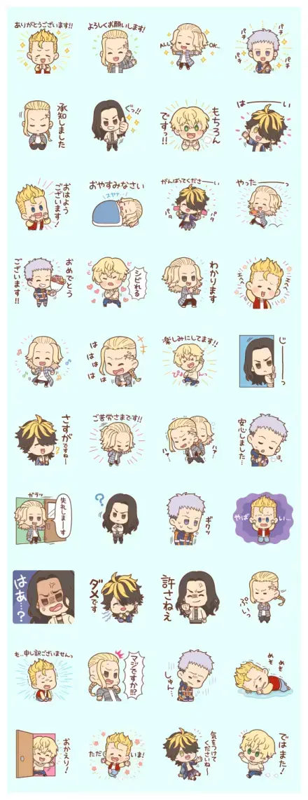 It is not every day you see delinquent gang members worrying about their manners. This pack takes the rowdy crew from Tokyo Manji Gang and gives them a crash course in keigo, which is basically high-level polite Japanese. The irony is hilarious because these guys are usually known for brawling, not for bowing and saying their pleases and thank yous. It makes your daily chats feel a lot more respectful while still keeping that edgy anime flair.