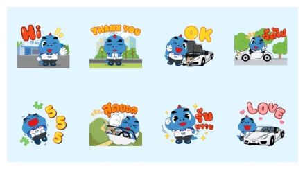 Then Godji gets into full travel mode! He’s giving a big thumbs-up next to a sleek white sports car, with a confident “OK” right there. Looks like he’s ready to make sure everything’s just right before hitting the road. And oh boy, is he ready to hit the road! In another sticker, Godji is happily cruising in a white convertible, huge smile on his face, with “ไปเที่ยวกัน” (which means “Let’s go travel!” in Thai) inviting everyone along for the ride through some lovely green scenery.