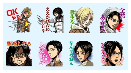Attack on Titan Kansai ver. LINE WhatsApp Sticker GIF PNG
