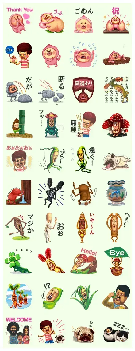 Sony is a massive player in the digital assets space because they bridge the gap between niche Japanese art and global trends. They take something like Toshitaka Nabata’s bizarre world and make it super accessible for anyone who wants to add a bit of personality to their messages. Their reputation for quality means these graphics look sharp on any screen you use.