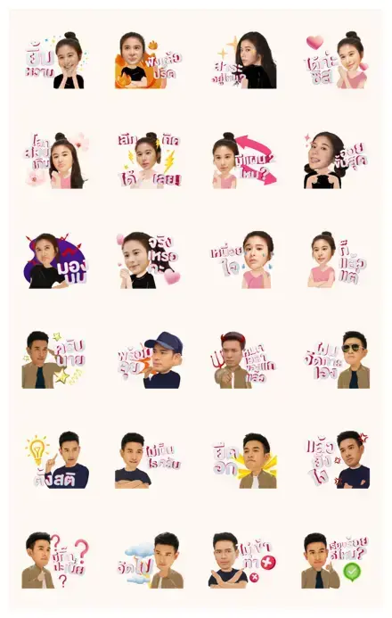 These designs capture the fake marriage but real feelings vibe of the drama perfectly. Using them feels like you are part of their secret undercover mission. Whether you are teasing a friend about a secret fling or just being dramatic about a long day at work, there is a character expression here that fits the bill. The artwork is vibrant, the expressions are exaggerated in the best way possible, and the Thai captions add that authentic flair fans love.