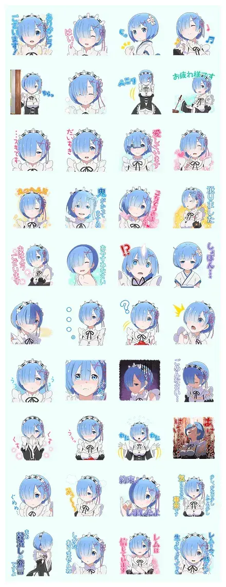 This collection captures everything we love about Rem from Re:ZERO -Starting Life in Another World-. She is known for being incredibly loyal and gentle, but we all know she has a bit of a spicy, demonic side when she is provoked. This sticker set lets you play with both of those vibes, making your conversations way more interesting. Whether you are feeling super helpful or a little bit mischievous, there is a Rem for that.