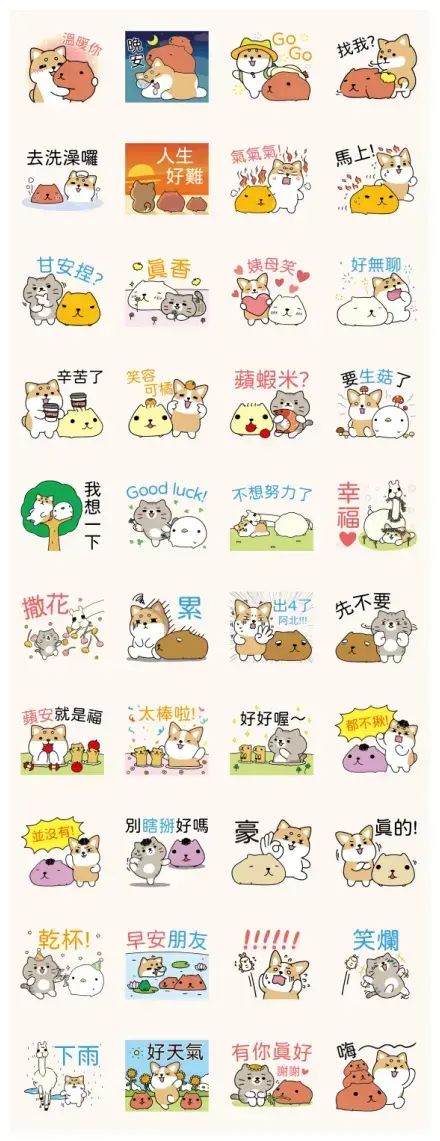 The variety is honestly impressive. You have got them enjoying coffee breaks, snacking on apples, and even growing mushrooms on their heads when things get a bit weird. One of my favorites shows a Shiba stuck in a tree just observing the world. If you are feeling overwhelmed, there is a sticker for that too, showing them looking totally drained after a long day. From “Good luck” cheers to “Good morning” greetings at a hot spring, this set covers every emotional base.
