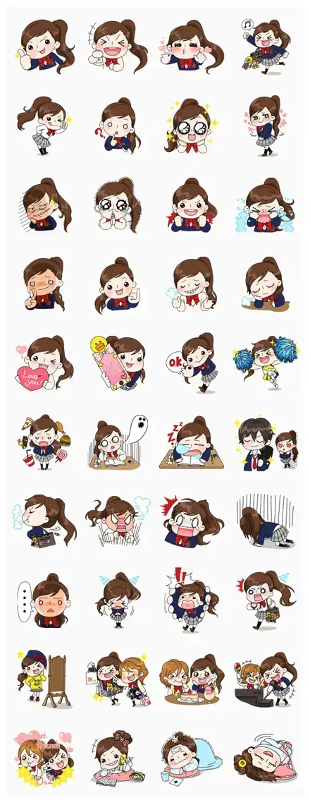 The art style is a classic example of the kawaii aesthetic that is so popular right now. Every sticker uses bold lines and bright colors to make sure Yuko pops against any chat background. Whether she is eating a giant burger or crying over her homework, the visual punch is always there. She is not just another random cartoon; she is an original character meant to represent all the little ups and downs we go through. You do not need to be a student to relate to that feeling of wanting to roll on the floor laughing or the sheer exhaustion of a long day.