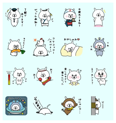 But wait, there’s more! Imagine sending a surprised Yuru Usagi chomping on a giant carrot, or a sleepy bunny tucked in bed wishing someone “Good night!” We even get a playful Yuru Usagi in an animal onesie, looking all shy with a little “Tada!” And for the more relatable moments? There’s an anxious Yuru Usagi next to a stress meter (we’ve all been there!), a determined, boxing-gloved Yuru Usagi ready for anything, and even our bunny friend peeking mischievously from behind a pole. These stickers truly cover the whole spectrum of daily emotions, making your chats so much more expressive and lively!